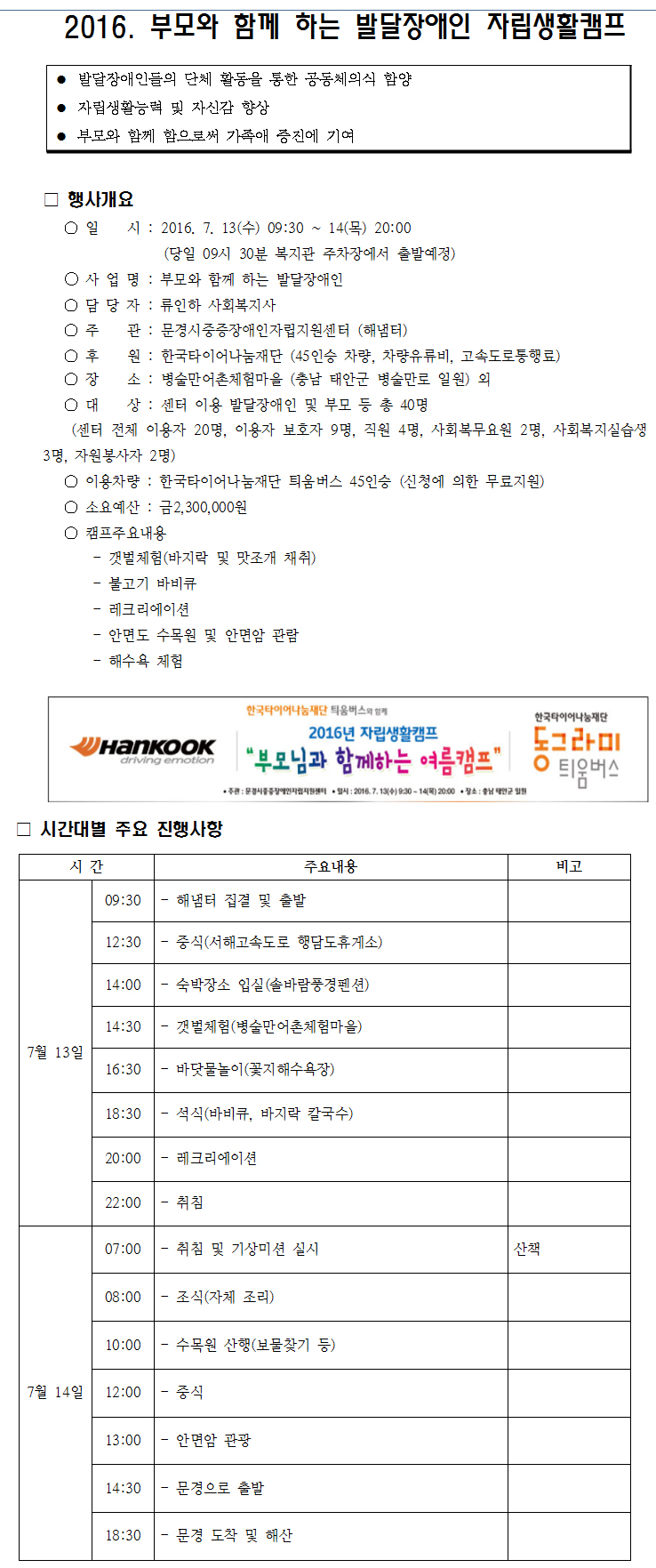 2016. 부모와 함께 하는 자립생활캠프 실시