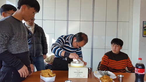 직접 초를 꼽고 케이크까지 친구들에게 배분하는 것으로 마무리 지었습니다.
