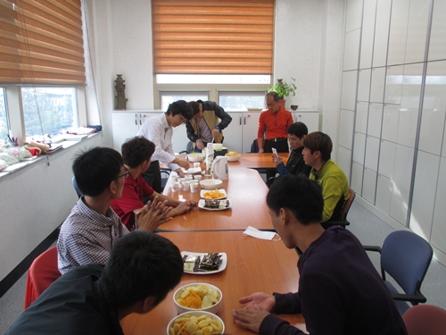 과자의 세팅과 케이크를 직접 나눠어 주는 센스까지