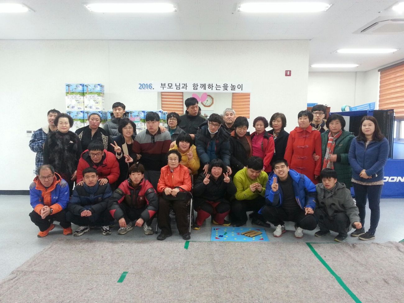 2016. 상반기 부모간담회 및 윷놀이 개최 최고관리자 0 1382 2016.02.22 14:40 2016년도 상반기 부모간담회 및 부모와 함께 하는 윷놀이를 다음과 같이 개최하였습니다. ○ 개최일자 : 2016. 2. 19(금) ○ 장 소 : 해냄터(탁구장) 및 자립반 프로그램실 ○ 대 상 : 이용자, 해냄터 이용자 부모, 직원