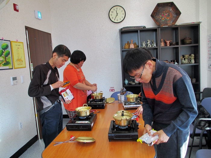 자립반 1월 일상생활훈련 최고관리자 0 1364 2016.01.08 16:43 2016년 1월 7일(목) 자립반에서는 일상생활훈련의 일환으로 라면삶기를 하였습니다. 자신이 원하는 라면을 사와서 스스로 가스버너를 들고와 물을 끓여 스스로 라면을 삶아 먹는 모습을 보여주었습니다.