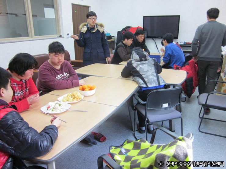 도움반 1월 생일행사(강정빈) 최고관리자 0 1851 2016.01.25 13:32 2016년 1월 22일(금) 도움반 이용자인 강정빈씨의 생일행사를 가졌습니다. 강정빈씨의 어머니께서 가져다주신 귤과 튀김을 맛있게 먹으며 강정빈씨의 생일을 다 같이 축하해 주었습니다.