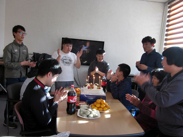 민상희씨 어머니께서 보내주신 음식을 이용하여 생일잔치를 하였습니다.