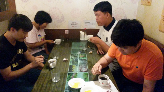 모두 자신의 스타일에 맞게 스스로 돈가스를 썰어먹었으며 후식으로 커피까지 마시고 나니 얼굴에 미소가 올라오는 모습을 보여주었습니다.