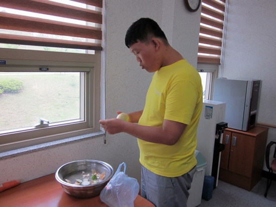 2015년 7월 15일 (수) 도움 반에서는 요리활동의 일환으로 돈 카레 덮밥을 해 먹었습니다.