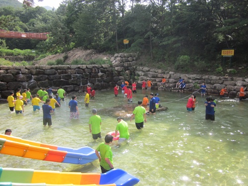 이용자들과 성주봉 정산도 올라가고, 휴양림 내의 계곡에서 물놀이도 하고, 밤에는 레크리에이션도 하면서 모두들 즐거운