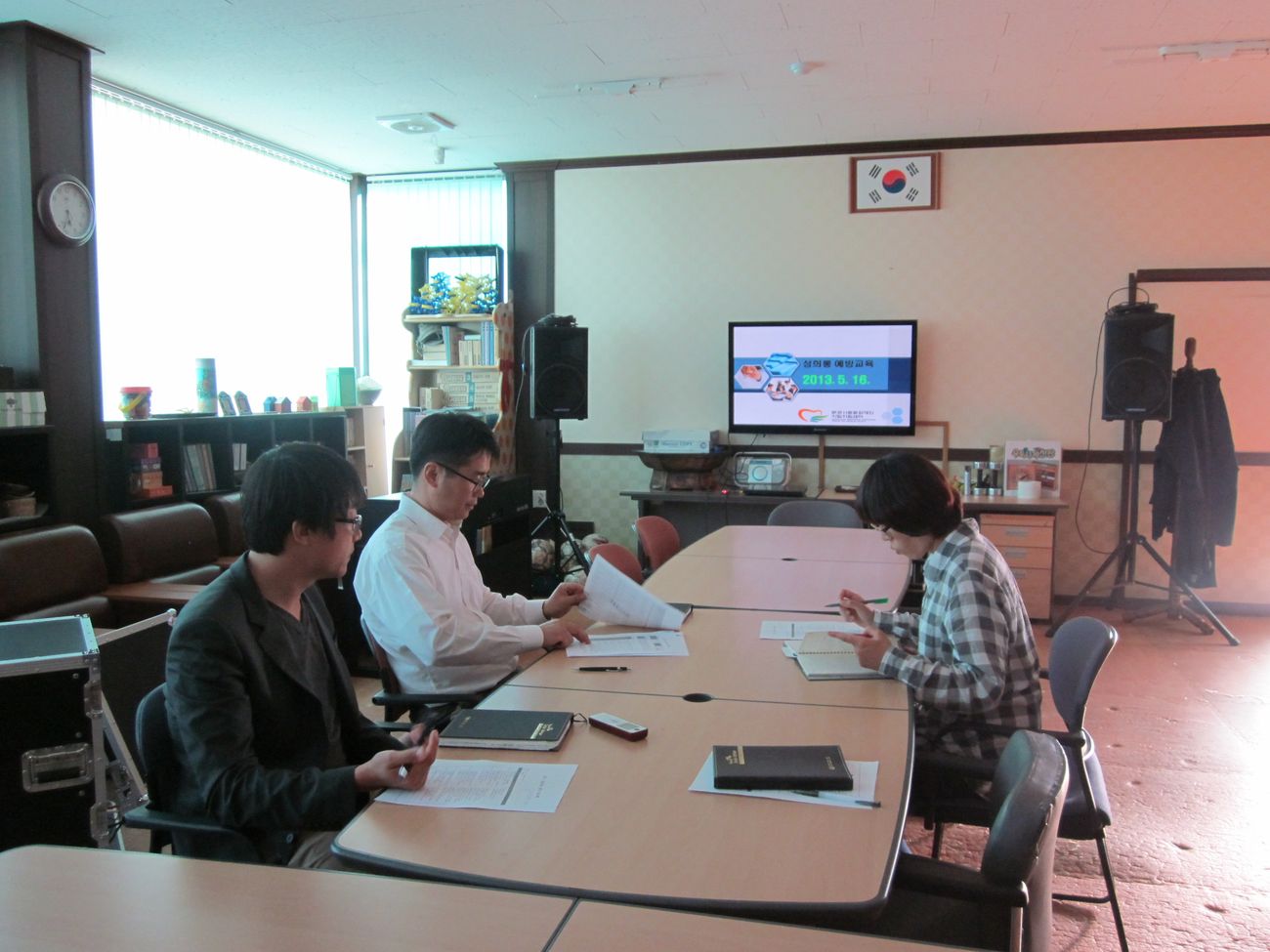 제2차 직원교육(직장내 성희롱예방) 실시 최고관리자 0 1947 2013.05.16 18:27 16일 오후 5시, 센터 대화동실에서 김정규(총괄팀장)이 센터직원들을 대상으로 대구지방노동청의 성희롱예방교육 자료를 활용하여 직장내 성희롱 예방교육을 하였습니다. 이번 교육은 의무적으로 실시해야 되며, 직장내 성희롱의 개념, 유형, 남녀고용평등법 등과 관련하여 깨끗한 직장 만들기가 될 수 있도록 센터 직원들에게 인식하도록 교육하였습니다.