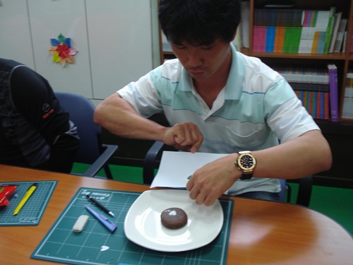 자립반에서는 5월29일 특별활동 일환으로 초코파이를 이용해 이용자들이 좋아하는 모습으로 꾸미기를 진행했다