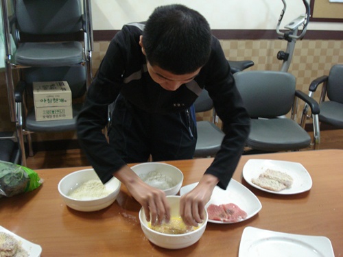 자립반 요리활동(돈가스) 최고관리자 0 2188 2013.05.30 16:58 자립반 이용자 대상으로 5월 30일 목요일 돈가스를 만들었다. 경양식에서 나오는 것처럼 똑같은 모양을 만들어 낸 돈가스 맛도 일품!