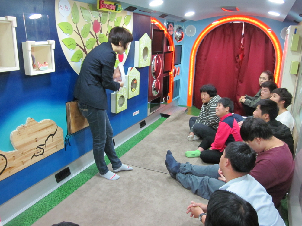제1차 성교육 실시(경북북부청소년성문화센터 이동형버스 성교육) 최고관리자 0 2182 2013.04.30 17:50 30일(화) 오후 1:30분, 센터 앞마당(주차장)에서 제1차 성교육을 실시하였습니다. 경북북부청소년성문화센터 이동형버스 성교육에 신청하여 센터 이용자들을 대상으로 전문 강사로부터 생명의 탄생 및 신체청결관리와 성폭력 예방에 대한 교육과 임산부, 신생아 돌보기 등 체험교육을 실시하였습니다. 이번 성교육을 통해 성에 대한 올바른 이해와 성적 위험에 대해 인지하여 장애인 스스로 자기 몸을 보호할 수 있도록 앞으로도 지속적인 성교육이 필요할 것으로 생각됩니다.