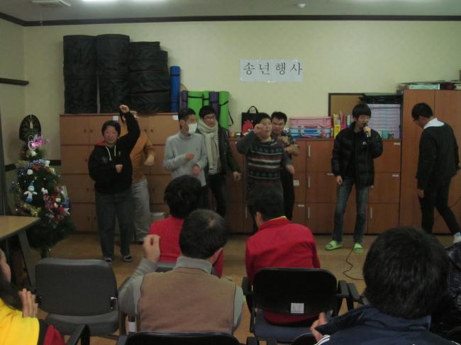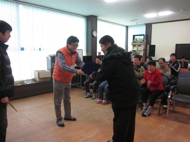 2012 해냄터 송년행사 최고관리자 0 1751 2013.03.06 15:19 2012년 한 해 동안 고생한 이용자, 직원분들과 함께 즐거운 송년행사를 진행하였습니다.자립반의 스포츠댄스, 도움반의 합창, 사회복무요원의 노래, 직원분들의 마술쇼까지..예상하지 못한 폭설로 조기 종료되었지만, 내년을 기약하며 그동안 모두 수고하셨습니다.