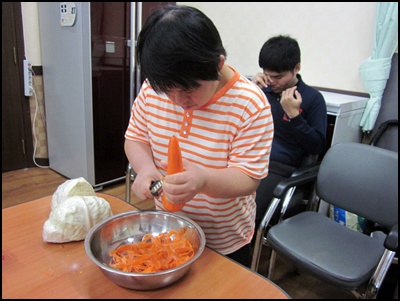 도움반에서 다양한 야채를 이용한 참치비빔밥을 만들어 먹었습니다.