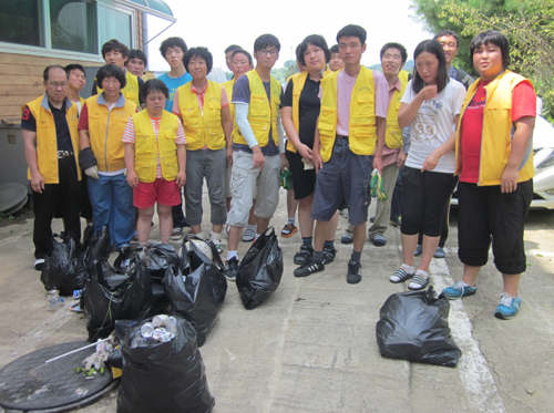 이날 지적장애인들과 센터(해냄터)직원들은 무더운 날씨에도 불구하고 경찰서 및 오곡뷔페 인근 도로에 버려진 쓰레기들을 수거하여 깨끗한 거리를 만들었다