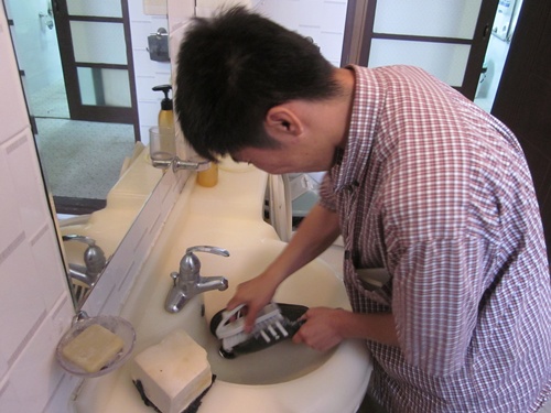 각자 본인의 실내화를 가져와 빨래비누와 솔을 가지고 열심히 세척하였습니다.