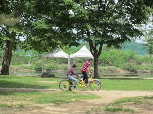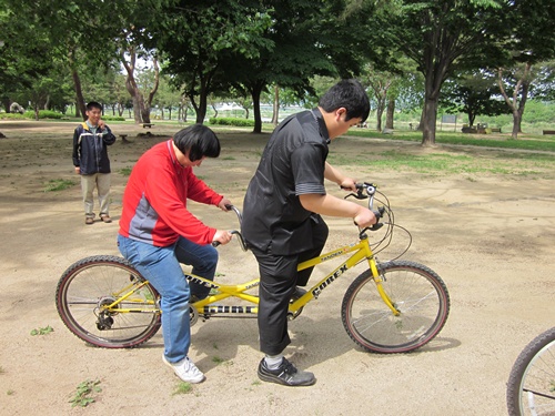 도움반 이용자 대상으로 영신숲에서 자전거를 탔습니다.