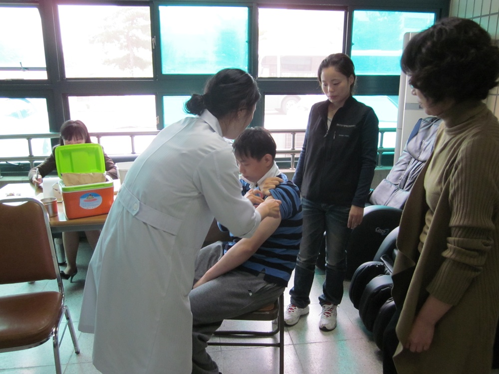 센터 이용자 독감예방접종 실시하다 최고관리자 0 1885 2013.03.05 14:57 우리 센터에서는 이용자를 대상으로 무료로 독감예방접종을 실시하였다.2010. 10. 13(수) 문경시보건소와 연계하여 실시하였으며, 이번 예방접종을통해 이용자들이 건강한 삶을 누릴는데 도움이 될 것으로 기대한다.