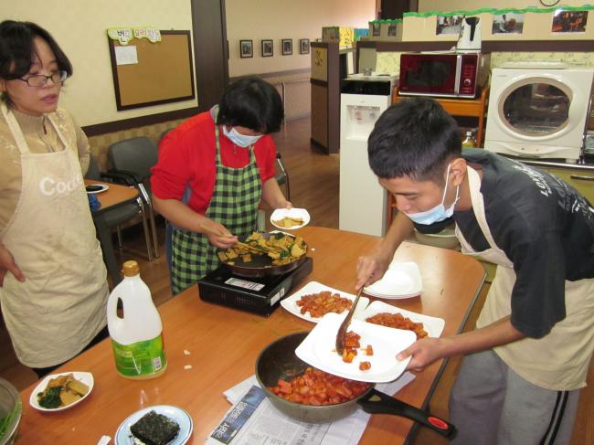 10월 요리활동으로 소시지 야채볶음을 만들었습니다.