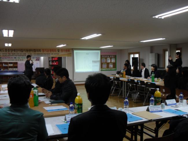 경북중증장애인자립지원센터협의회 정기총회 및 연찬회(4/1) 최고관리자 0 1943 2013.03.05 12:04 2010년 4월 1일(목) 오전 11시 구미시중증장애인자립지원센터에서 주관한 경북중증장애인자립지원센터협의회 정기총회 및 연찬회에 참석하였습니다. 이날 비가오는 굳은 날씨에도 8개시의 많은 센터 직원들이 참석하여 뜻깊은 자리가 되었습니다. 앞으로도 센터간의 정보교류와 만남을 갖는 자리가 많이 마련되었으면 좋겠습니다.