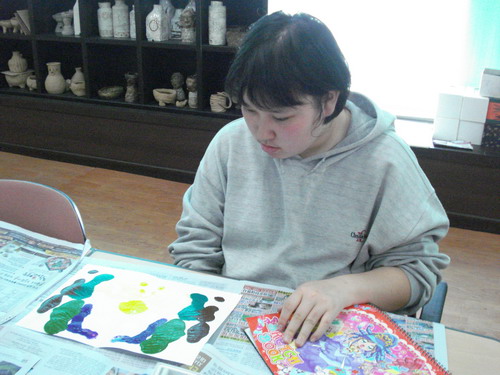한 쪽면에 물감을 짜서 종이로 덮어서 찍어내는 데칼코마니를 해보았습니다.