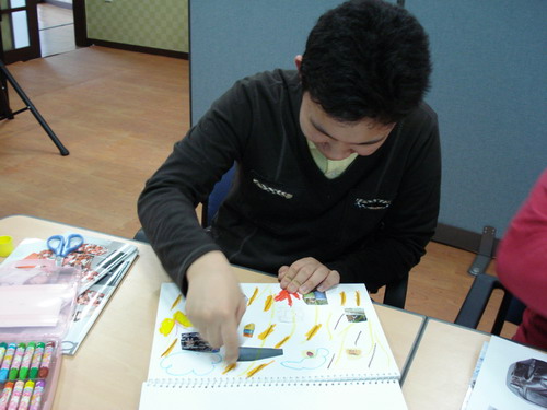신문이나 잡지 등을 오려서 붙이고 크레파스로 색칠하여 예쁘게 꾸며보았습니다.