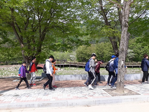 4월 26일 (목) 도움반에서는 일상생활훈련의 일환으로 문경새재 3관문까지 전원 완등하였습니다.