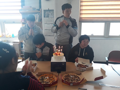 3월27일(화) 도움반에서는 이용자 생일 파티를 했습니다.