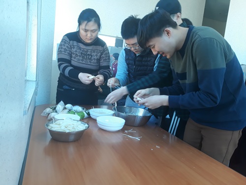 시중에 판매하는 순두부양념장을 이용해 쉽고 간편한 방법으로 만들 수 있도록 지도했지만